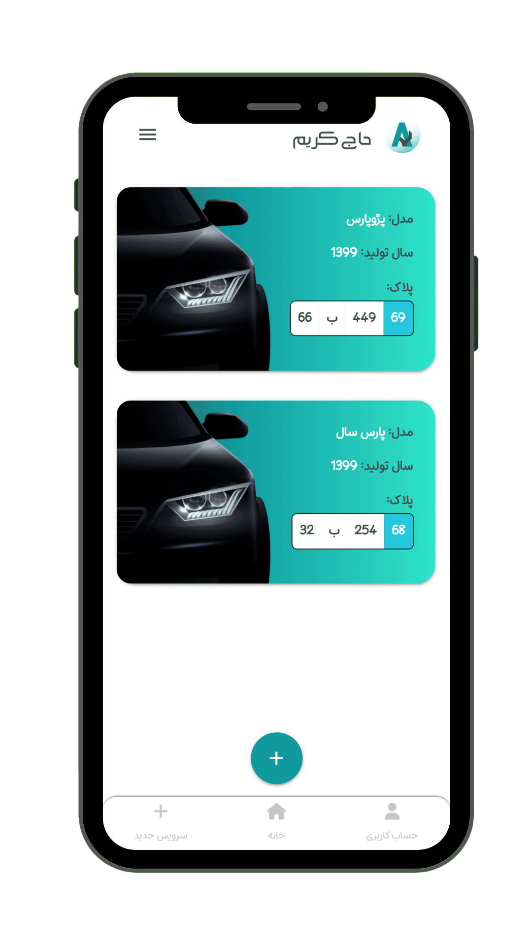 امکان ثبت خودروها و اضافه نمودن سرویس مرتبط به هر خودرو در فضای ابری.